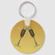 Un par de elegantes copas de champán, flautas, tocando para un brindis elegante a su aniversario, graduación, compromiso o celebración de bodas, o el comienzo de un año nuevo. Formal o informal, es hora de disfrutar de un pequeño cóctel fiesta burbujeante. Un fondo dorado de bonito completa la imagen para un fiesta de alta clase.