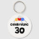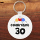 Tres globos de colores primarios y texto negro que dice "Celebrando 30" en tarjetas de cumpleaños 30, camisetas, tazas y más.