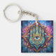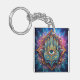 An artistic and detailed representation of the hand of Fatima, a powerful symbol of protection and good fortune, adorned with intricate designs and an all-seeing celestial eye.