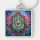 An artistic and detailed representation of the hand of Fatima, a powerful symbol of protection and good fortune, adorned with intricate designs and an all-seeing celestial eye.
