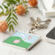 Un cerdo adorable está mirando hacia arriba a un cerdo que sopla en el cielo sosteniendo un globo cardíaco. Envíe un piropo a alguien que pueda estar sintiéndose mal o enfermo. Sencillo fondo de patrón en el cielo y la hierba con los cerdos añaden un poco de brillo a este regalo de hola.