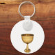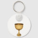 Este diseño es un cáliz. El cáliz es de oro y tiene un trozo de pan encima. Este diseño de cáliz se ve muy bien en esta cadena de claves