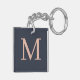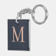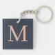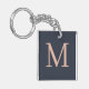 Stylish Personalized Monogrammed keychain with light pink initial set on charcoal background.