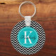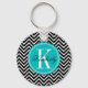 Llavero Chevron blanco y negro con monograma Verde azulado