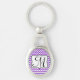 Purpurina púrpura moderno Chevron Zig Zag Stripe Monograma Cadena de clave inicial