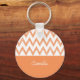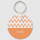 Un naranja de moda y kechain de patrón de chevron blanco con chevrons de lápiz de color dibujados a mano y dibujados a mano. Personalice este moderno y elegante diseño de zigzag naranja añadiendo su nombre.