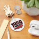 Vista posterior 3/4 del vagón rojo y blanco de la estación de Chevrolet de 1959 sentado ante grandes números negros y rojos