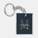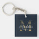 Simple Chic Script Metallic Navy Blue Gold Monogram Keychain