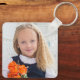 Chic 2 photo square keychain for a trendy girl's birthday. Celebrate your child's birthday with two beautiful photographs of them on this add your own photograph gift with turquoise squares. Add your kid's name and age.