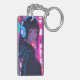 Hermoso diseño de cadena de claves de un chica de anime con un auricular en estilo Cyberpunk