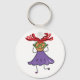 Un chica gracioso que lleva unas gafas muy grandes. Este diseño parece realmente efectivo en esta cadena de claves