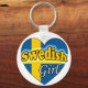 Leuke sleutelhanger se encontró con hart afgebeeld se encontró de Zweedse vlag erop. Estado de Op de tekst: El chica sueco De achtergrond está en el ingenio de kleur. Leuk om the geven als cadeau of voor jezelf om te laten zien dat je trots bent om Zweeds te zijn. kleuren: geel, blauw en wit.
