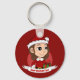 Tarjeta de felicitación Keychain con el ilustracion de un chica lindo y sonriente con el pelo largo y marrón ondulado, el chica está usando un disfraz de Santa Claus con un gorra rojo y sosteniendo un regalo. Sobre un fondo rojo. Con una plantilla de texto de personalizable para su nombre o mensaje. ¡Haz que tu temporada de vacaciones sea aún más especial este año, ya que te han dibujado a ti mismo o a tus seres queridos en una variedad de productos! A lo largo de este año, he dibujado numerosos personajes de niños, chicas y adultos para que todos puedan encontrar un personaje de caricatura, que aparecería similar a ella o a sus hijos. Para ver más de los personajes de dibujos animados de mis Navidades (se agregan otros nuevos a diario) mira la categoría "Navidades" de mi tienda. Si no puedes encontrar un personaje similar a lo que buscas, contacta conmigo a través de la sección de comentarios o envíame un e-mail (radkakavalcova@gmail.com), describe lo que te gustaría que dibujara y trataré de que termine para ti lo antes posible. Contáctame también si quieres ver una de mis imágenes en un tipo diferente de producto o hacer que este producto sea más personalizado.