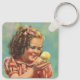 Llavero Chica ventilado con polluelo bebé, niño feliz sonr