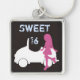 Keychain Sweet 16 de moda. Chica de silueta y coche en marrón, rosa, azul y blanco. Algunos gráficos de arte... ...que delician los garabatos.