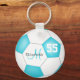 Esta cadena de claves de fútbol personalizada para chicas incluye una pelota de fútbol clásica con paneles turquesa y blanco - personalizar el nombre del jugador, número de monograma y camiseta - de katz_d_zynes