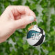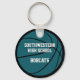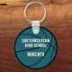 Este elegante keychain temático sobre baloncesto presenta la imagen realista de un baloncesto que tiene paneles de color verde azulados, blancos y negros alternando en el frente y una forma verde azulada de baloncesto simple en la parte posterior - fácilmente personalizable con el nombre del jugador y número de camiseta en el frente y el nombre de la escuela o club y mascota en la parte posterior - por katz_d_zynes