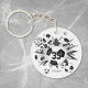 Esta divertida cadena de claves de fútbol para chicas presenta una "explosión" de balones de fútbol de tamaño variado y formas de estrellas grises y negras - la estrella negra tiene un pequeño patrón de puntos de polka blancos - personalizar con el nombre del atleta y número de camiseta - el fondo blanco es personalizable - de katz_d_zynes
