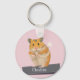 Esta encantadora cadena de teclas personalizadas para chicas presenta un bonito y lujoso Hámster Dorado con una flor sobre un fondo rosado. El nombre puede cambiarse. Un regalo encantador o un rellenado de reservas.