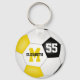 Este equipo colorea el llavero de fútbol para chicas o niños y presenta un estilo tradicional de baloncesto de fútbol con paneles negros, dorados y blancos - personalizar el nombre del jugador, número de monograma y camiseta - de katz_d_zynes