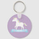 Un llavero con un lindo unicornio blanco mágico con tonos rojo pastel, azul y amarillo en una pancarta azul con espacio para la personalización del nombre. ¡Perfecto para las niñas que aman a los unicornios!
