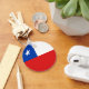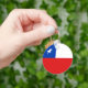 La bandera de Chile ha sido ajustada hábilmente al fob circular de esta cadena de claves. Un práctico recordatorio del patrimonio chileno.