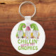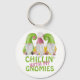 Chillin with My Gnomies Gnome Humor keychain by Ricaso - criaturas del gnomo verde y rosa y las palabras escalofriantes con mis gnomías