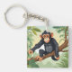 Llavero Chimpanzee con su linda cola en la rama saluda