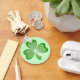 Un diseño moderno con un brillante y brillante shamrock sobre un fondo verde. Keychain con un diseño de personalizable para que puedas personalizar con tu propio color de fondo, texto, imágenes e ideas. Creado con fotografías originales y técnicas digitales por Jess Perry