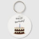Una cadena de claves Feliz Cumpleaños con un pastel de chocolate y vainilla.
