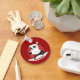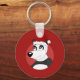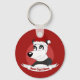 Button keychain with illustration of a head of cute panda bear with Santa's hat; great decoration for Christmas holidays, editable template design with custom field for your own text, illustrated by Radka Kavalcova