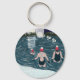 👉 Put a smile on a face with this wild swimming Christmas holiday keychain! Open water swimmers are in a lake in winter with Santa hats on. It’s night time and the moon and stars are reflected in the water.