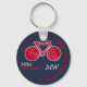 Llavero ciclismo, bicicleta roja en la cadena azul con nom
