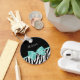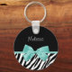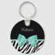 Una elegante cadena de estampado de cebra en blanco y negro con una cinta de menta de menta acuática giratoria atada a un lindo arco. Personalice esta moda y este elegante accesorio de moda de impresión animal agregando su nombre al área de texto personalizado. Imagen plana impresa, no cinta real.