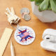 Cadena de claves con mi diseño rojo, blanco y azul de la bandera estadounidense rodeada de estrellas. El texto dice "Feliz 4 de julio".