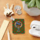 La insignia escudo del clan Bruce está rodeada por una correa y hebilla sobre el fondo escocés de caza. Texto personalizado en ambos lados.