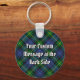 Insignia escudo del clan Gordon rodeada por una correa y hebilla sobre fondo tartán. Texto personalizado en ambos lados.