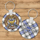 Insignia escudo de Clan Hannay rodeada por una correa y hebilla sobre el fondo tartán. Texto personalizado en ambos lados.