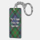 Insignia escudo del clan Paterson rodeada por una correa y hebilla sobre el fondo del tartán. Texto personalizado en ambos lados.