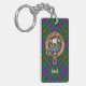 Insignia de escudo de Clan Wood rodeada por una correa y hebilla sobre el fondo del tartán. Texto personalizado en ambos lados.
