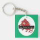 Una Keychain cuadrada y acrílica para personalizar, con un tierno dragón rojo sosteniendo un lugar para añadir tu nombre o un número de teléfono.