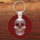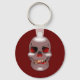 El diseño muestra la pintura digital de un cráneo sonriente sobre un fondo rojo oscuro. Puede cambiar fácilmente el color del fondo e insertar sus propias palabras haciendo clic en el botón "personalizar".