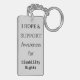 La cadena de claves de ángel de la cinta de sensibilización presenta el arte de una pintura de ángel de la conciencia de plata. El lado artístico señala "Concienciación sobre los derechos de las personas con discapacidad" y el otro lado dice "¡Espero y apoyo la toma de conciencia sobre los derechos de las personas con discapacidad!" ¡Añade tus propias palabras personalizados para el arte ángel personalizado y concientiza a los personalizados de las cadenas de claves de encanto! También se puede eliminar el texto de una cadena de claves sólo de ángel. Las cadenas de arte de la pintura de la cinta de ángel de la conciencia de plata se pueden personalizar con mensajes personalizados para crear una gran conciencia que cause cadenas clave de arte para recaudadores de fondos, regalos de concientización u otros eventos especiales. Dé a este ángel el encanto de la cadena de claves de arte como regalo para cualquier ocasión.