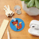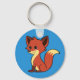 Un keychain azul con un personalizado zorro rojo, marrón y crema adornado con orejas puntiagudas y una gran cola buscadora.