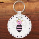 Abeja de chica a rayas negras y rosa sonriente con rizos amarillos y lápiz de labios. ¡Genial para los amantes de las abejas con burbujas!