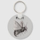 Personalice esta cadena de claves con su nombre o cualquier texto. Este es un ilustracion blanco y negro vintage de una abeja bastante temible. Tiene un gran cantante y cráneos en las alas sobre un fondo gris claro. Ver mi tienda para otros productos con este diseño.