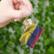 Cadena de claves con la bandera de Colombia en diseño de tela ondulada. Este diseño presenta los colores y el diseño de la bandera de Colombia con un hermoso efecto texturado de material ondulado. El diseño de esta bandera es una gran manera de mostrarte orgulloso de ser de Colombia.