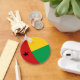 La bandera de Guinea-Bissau ha sido ajustada hábilmente al fob circular de esta cadena de claves. Un práctico recordatorio del patrimonio guineano.