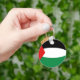 La bandera de Palestina ha sido ajustada hábilmente al fob circular de esta cadena de claves. Un práctico recordatorio del legado palestino.