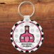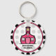 Un llavero con fondo de un punto de polka blanco y negro. Logo de Pink Schoolhouse dentro de un marco rosado caliente. El texto del personalizable dice "Maestra preescolar".